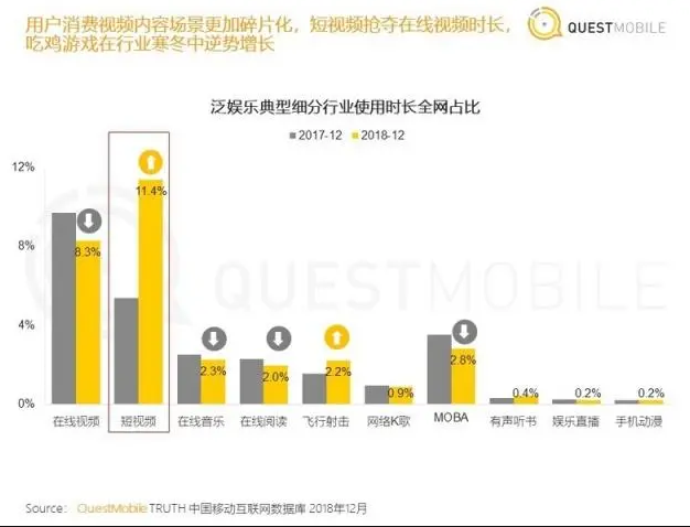 据那一年的QuestMobile《2018年中国移动互联网年度大报告》显示,用户手机APP的使用习惯明显从图文向音频视频转变。