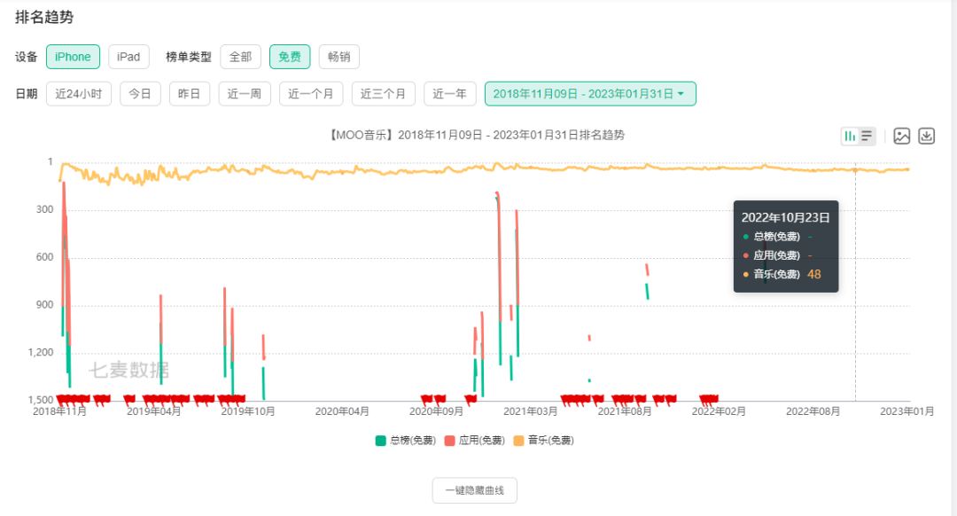 MOO上线至今在苹果商店排名情况,来源:七麦数据