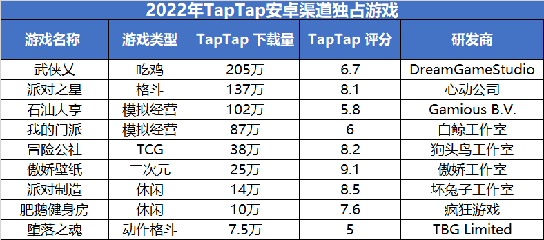 只有过往的平台独家游戏表现优异,才会有越来越多的游戏厂商愿意把安卓独占权交给TapTap。
