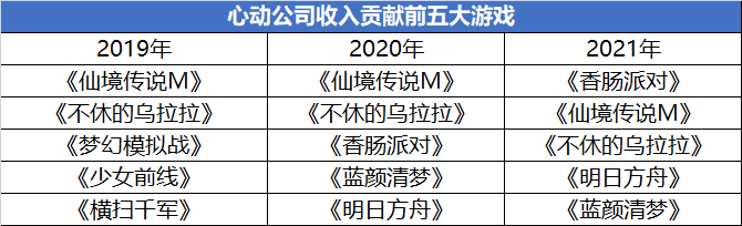 从收入贡献来看,最近3年,心动公司收入前五的游戏中除了《横扫千军》和《仙境传说M》系自研,其余游戏均是代理产品。