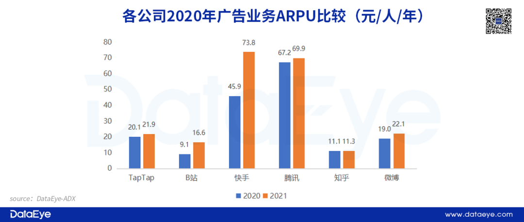 ③ARPU:TapTap增速放缓,较B站领先优势收窄