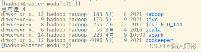 (3) 修改权限,给解压过来的spark安装包以hadoop权限,具体命令为: