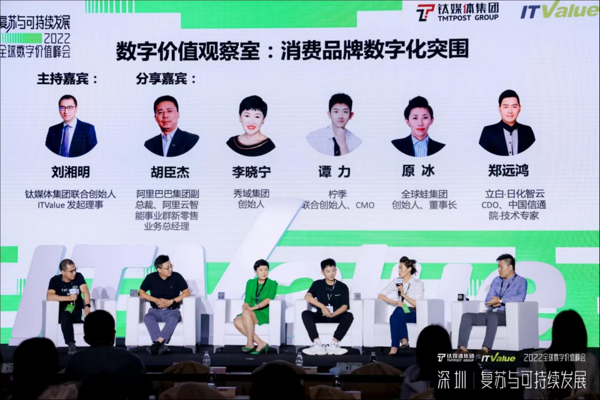 会上,阿里巴巴集团副总裁、阿里云智能事业群新零售业务总经理胡臣杰,秀域集团创始人李晓宁,柠季联合创始人、CMO谭力,全球蛙集团创始人、董事长原冰,立白·日化智云CDO、中国信通院、技术专家郑远鸿就消费品牌数字化营销的定义、价值走向、痛点弊端及落地规划进行了深度探讨。