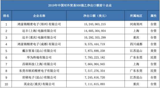 据有关部门2020年的统计,大陆出口额的十大企业中,台资企业占6席,净出口额十大企业中,台资企业占据7席,前四位全部是台资,包括富士康、广达、和硕等台企的代工厂。中国每年通过台资企业,获得了大量的外汇储备。