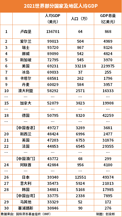 2021年台湾GDP增长6.28%,经济总量位居全国第八;人均GDP达到3.38万美元,接近韩国的3.48万和日本的3.93万美元(IMF统计)。