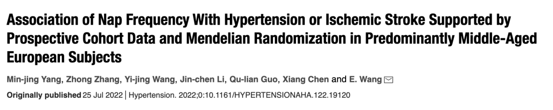 来自中南大学的科研团队,调查了频繁午睡是否可能是高血压或中风的潜在因果风险因素。据了解,这是第一项同时使用观察性分析和孟德尔随机化的研究。结果显示: