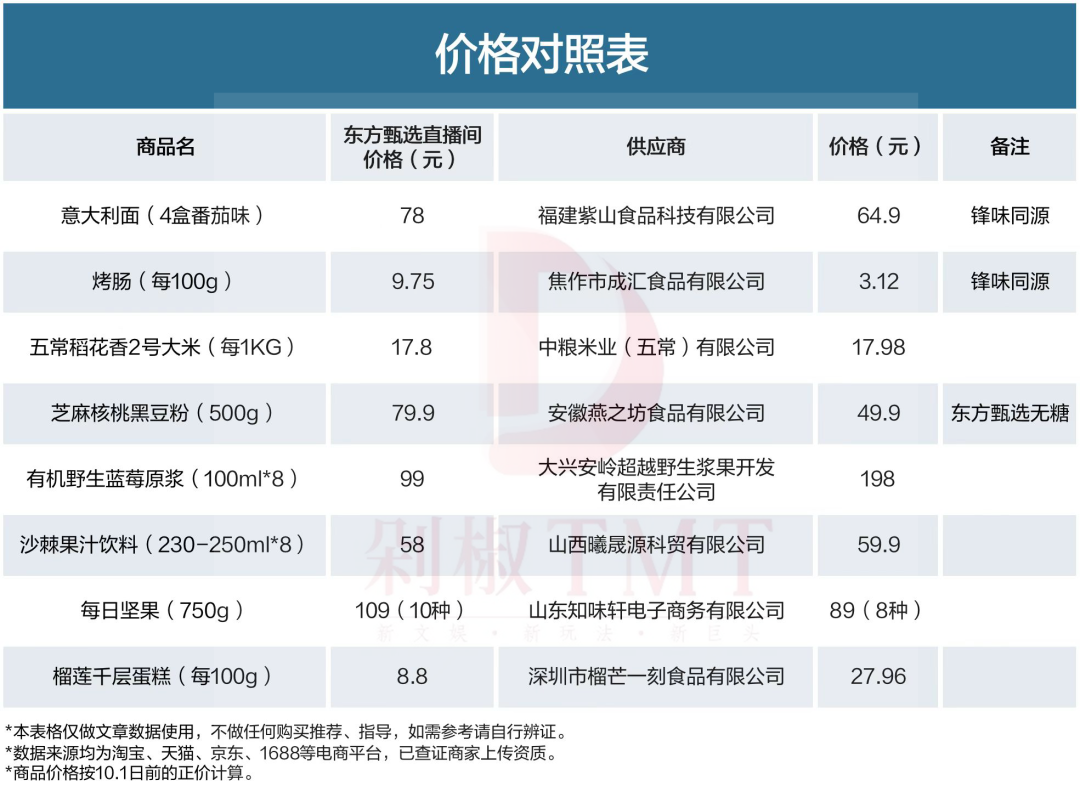 三、绝大多数产品,东方甄选价格跟供应商差异不大。