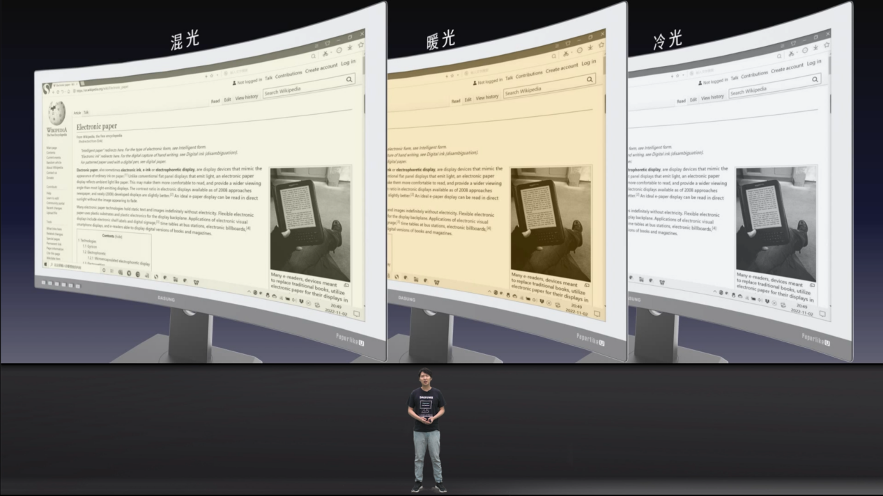 而在新品Paperlike U上,保留了25.3英寸的显示尺寸,同时加入了曲面显示能力,其还内置了曲面前光、无线图像传输等技术。Paperlike U拥有4000R曲率,与传统的平面结构相比,曲面屏幕更贴合人眼生理曲线构造,相同尺寸下,曲面显示器相比平面显示器的视角效果更广,同时也能带来更好的沉浸感。