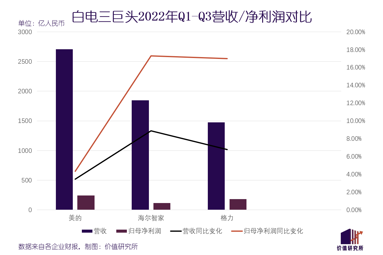 数据是最好的证据。尤其是营收和净利润,最能体现美的、海尔智家、格力三巨头的实力和经营状况。