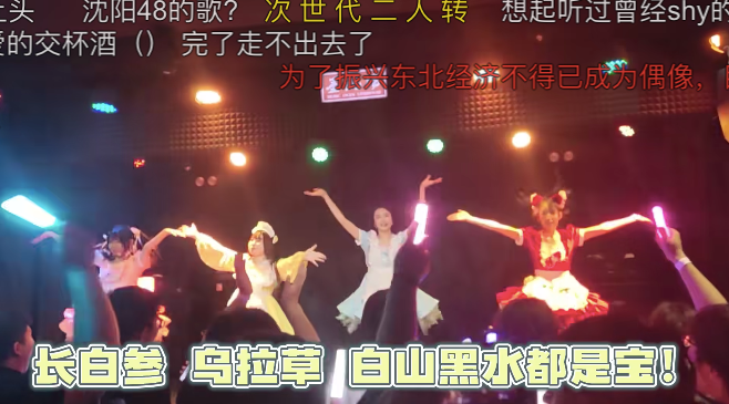 视频中Blossom表演的歌曲是SHY48原创曲《在东北的小偶像》,歌词本就有一定东北化特色,更引发关注的是台下应援口号,“长白参乌拉草,白山黑水都是宝;东北虎梅花鹿,袍子黑熊野山猪”,东北浓度严重超标。而台下词儿比台上多的情况,更被调侃“这不叫应援,这叫副歌”。