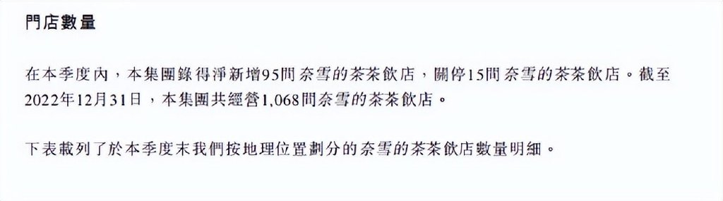1月13日,奈雪的茶披露2022年第四季度运营情况。在此文件的报告期内,奈雪的茶净新增95间茶饮店,关停15间门店。截至2022年12月31日,奈雪的茶目前共计经营1068间茶饮店。