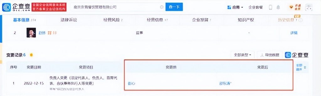 12月15日,南京奈雪餐饮管理有限公司的法人代表由彭心变更为邵东涛;