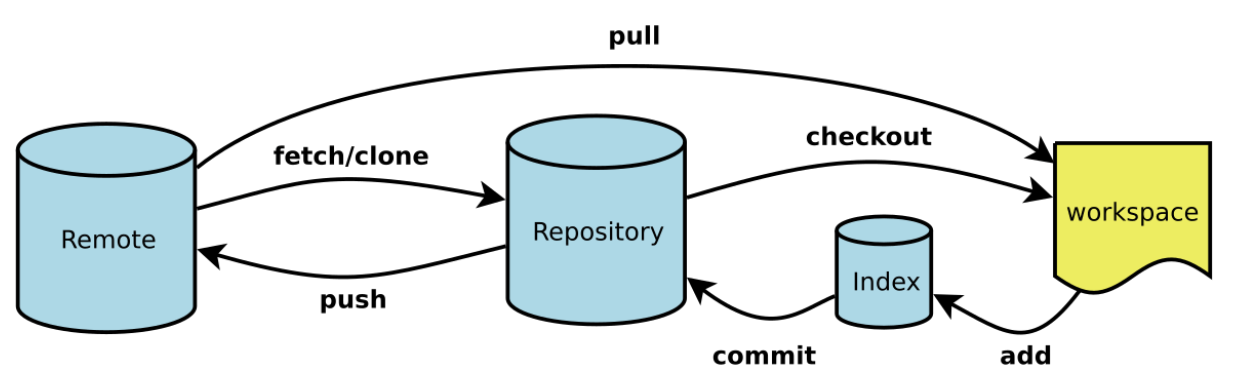 Index/Stage:暂存区,或者叫待提交更新区,在提交进入repo之前,我们可以把所有的更新放在暂存区。