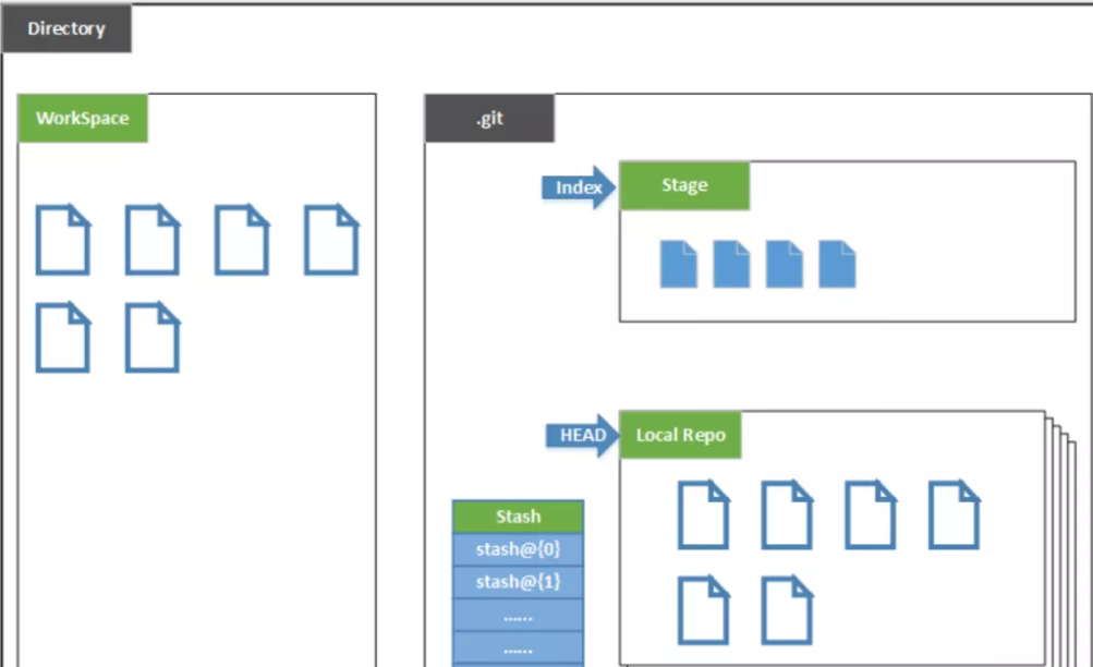 Repository:仓库区(或本地仓库),就是安全存放数据的位置,这里面有你提交到所有版本的数据。其中HEAD指向最新放入仓库的版本。