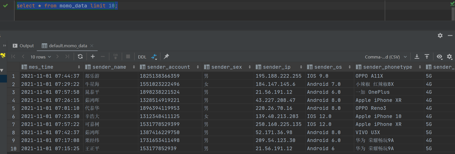 查看momo_data表的总行数(这里可能会耗费一点时间)