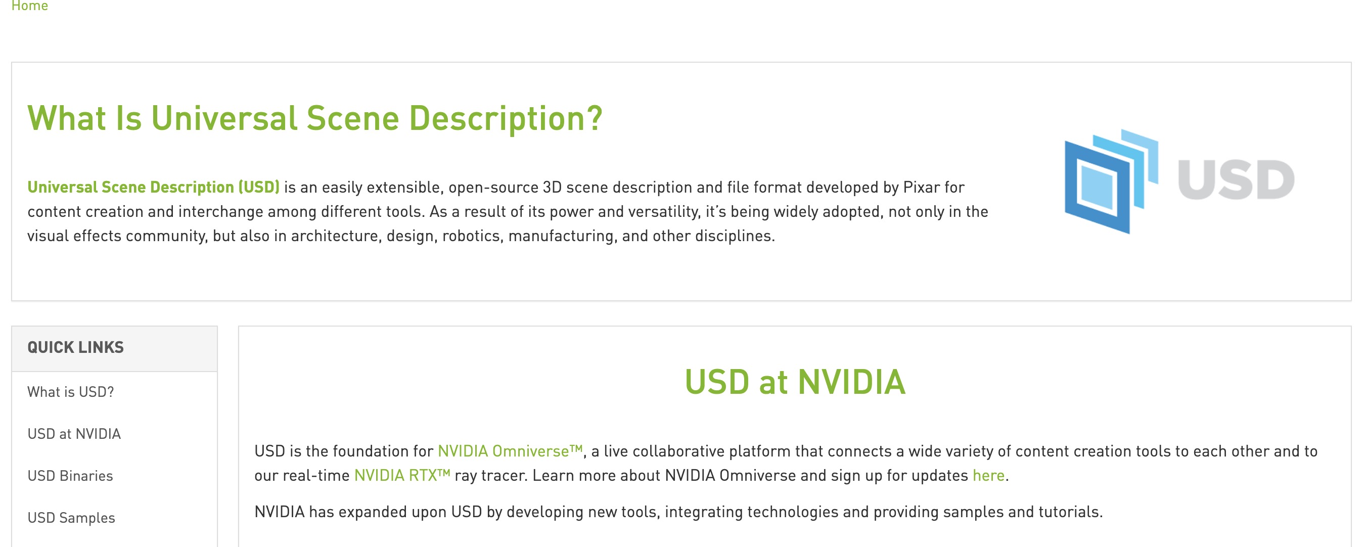 英伟达官网有关USD的介绍