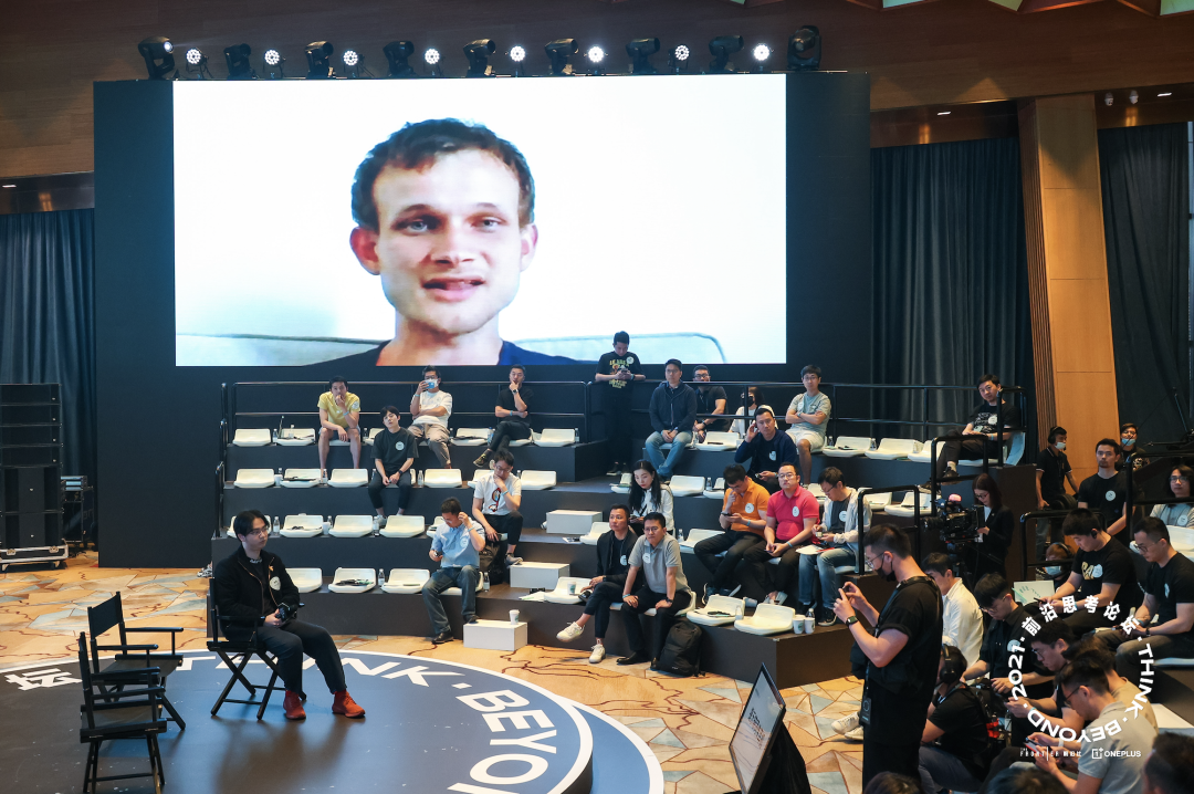 2021 年,Vitalik Buterin 正以线上视频的形式在极客公园举办的前沿思考论坛上做分享|图片来源:极客公园