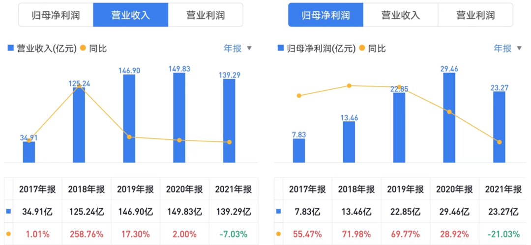 反映到财报表现上,2018年至2020年,盛趣游戏的业绩汇入确实大幅拉升了世纪华通的整体业绩,但在这三年对赌期里,盛趣游戏产生的净利润均是“踩线”完成对赌,难免让人存疑。且到了2021年,盛趣游戏的营收便从2020年的71.98亿下降至58.52亿,世纪华通的营收和净利润也在这一年出现负增长,分别同比下降7.03%和21.03%。