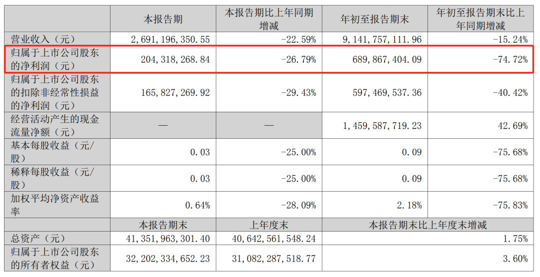 一方面,根据公司此前披露的财报数据,2022年前三季度,公司业绩皆为盈利状态,且截至2022年9月末,公司年度内累计归母净利润为6.9亿元。