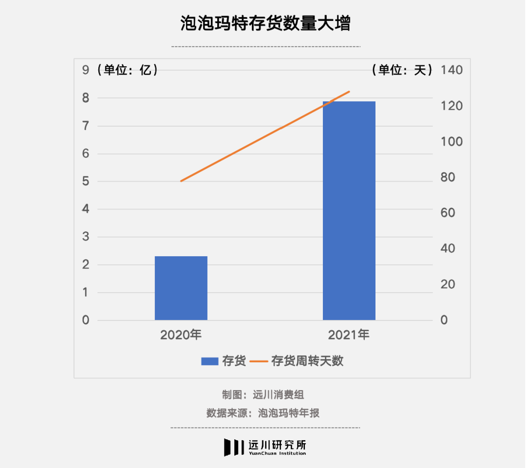 截至2020年上半年[3],泡泡玛特旗下共运营85个IP,包括12个自有IP、22个独家IP和51个非独家IP。而与之相伴的则是2021年泡泡玛特的存货从2.3亿元激增至7.9亿元,翻了两倍不止。同时,库存周转天数也从78天增加至128天。