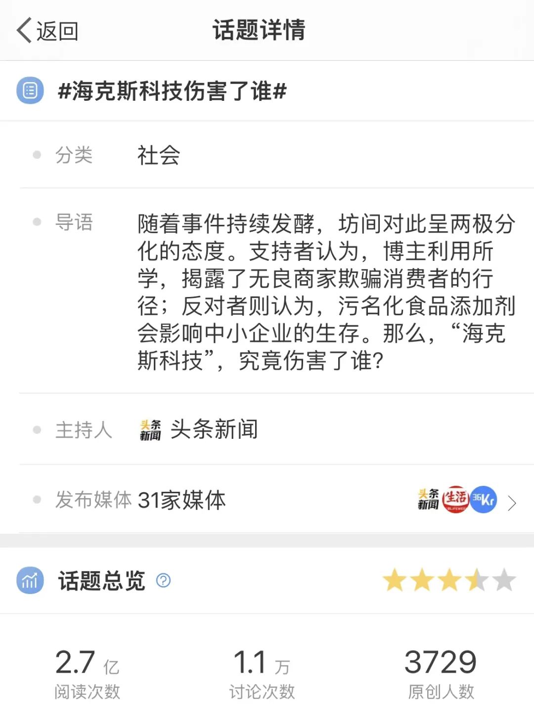 首先是早期缺位的权威媒体和专家开始大范围发声。例如中国新闻周刊的相关文章中,上海市食品安全研究会专家刘少伟分析,此类视频夸大了添加剂的危害,餐饮企业不应使用食品添加剂,但一些食品工业化产品必要时可以适量使用食品添加剂。