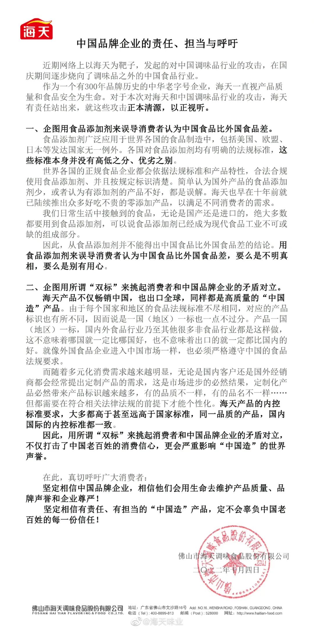 海天味业第二次声明