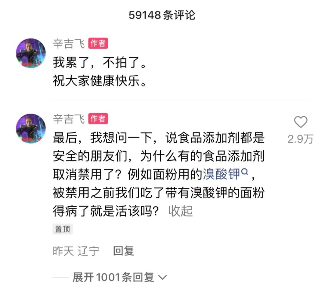 这些都让平台上对食品安全的恐慌成为了一种风潮,不论视频内容是否与添加剂相关,总能看见评论区有人玩梗。