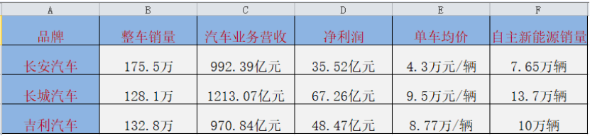 可以看出,尽管长安汽车自主品牌销量号称突破175万辆,但这一数据包含了高达50多万辆的商用车销量。单从乘用车销量上看,长安汽车自主品牌销量仅为120万辆,收入占比约为52%,总销量并不及吉利汽车(132万辆)。