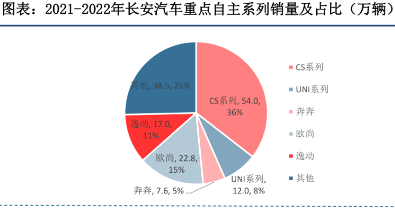 其中,CS系列覆盖6-21万价格区间SUV,2021年销量约为54万辆,在自主品牌中占比约为36%;逸动品牌主要聚焦10万元以下轿车市场,2021年销量约为17万辆,收入占比约为11%;此外,由商用车转为乘用车的低端车型欧尚系列销量约为22.8万辆,占比约为15%。