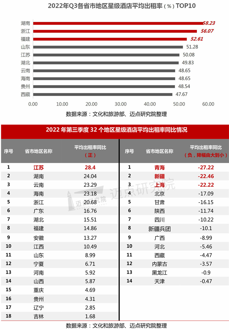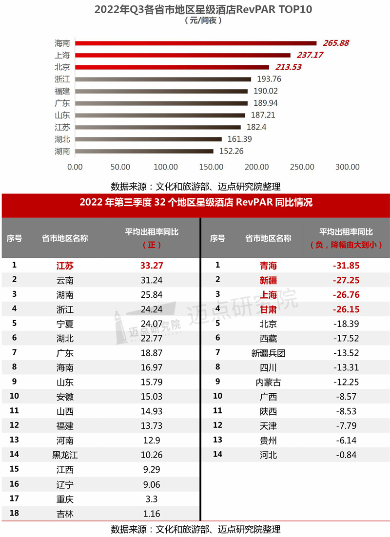 第三季度,全国32个省市地区星级酒店分布及具体经营情况表现如下: