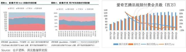 就数据来看,和海外正好相反,国内流媒体行业竞争情况虽正趋缓——自2018年以来,优爱腾芒无论是MAU,还是使用时长,市场份额变化都不大。