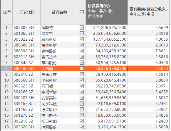 但钛媒体APP注意到,报告期内,公司的研发费用只有5033.64万元,同比减少1.71%,占营业收入比例为3.50%。对比2021年的5%有所下降。在18家光伏辅材公司中,中信博的研发费用支出处于中间位置,并不算突出。