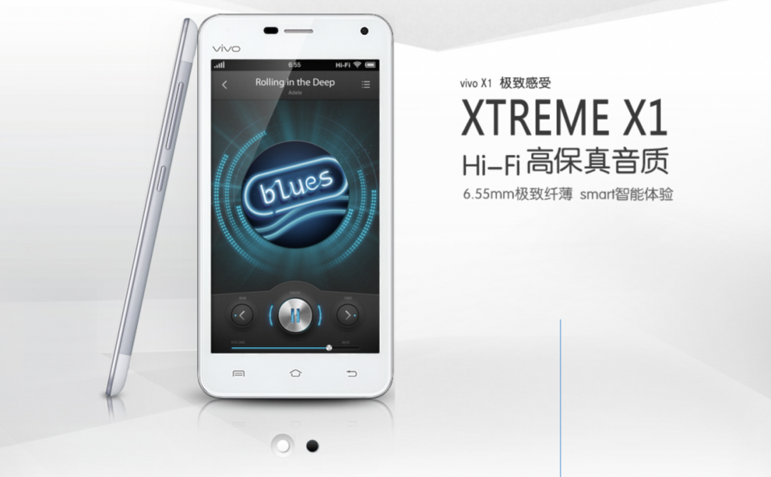 于是这一标签被具象化为音乐手机。2012年,vivo与美国专业音频芯片制造商Cirrus Logic达成合作,推出vivo X1,一举拿下最薄智能手机和全球首款Hi-Fi级别智能手机的双料冠军,当年销售量飙升到百万部。