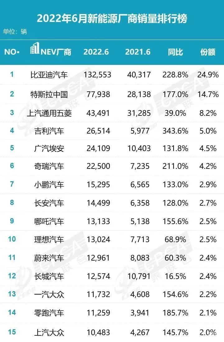 另一方面,中国新能源汽车的崛起也给这些旧时代的霸主带来不小的威胁,中汽协最新数据显示,6月份我国新能源汽车产销创历史新高,分别完成59万辆和59.6万辆,同比增长均达130%,其中纯电动汽车产销量同比均增长达120%。同时从半年数据来看,2022年1-6月,新能源汽车产销分别完成266.1万辆和260万辆,同比均增长1.2倍,一派欣欣向荣。