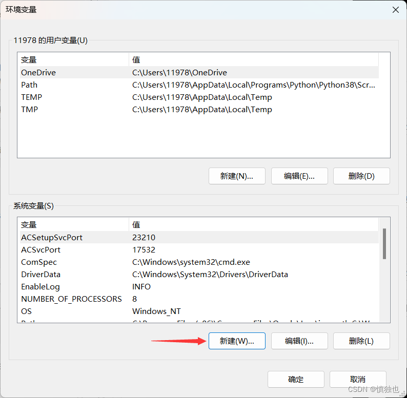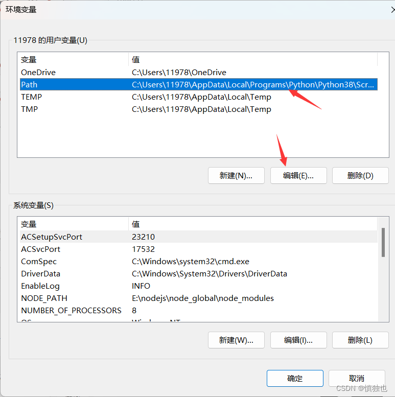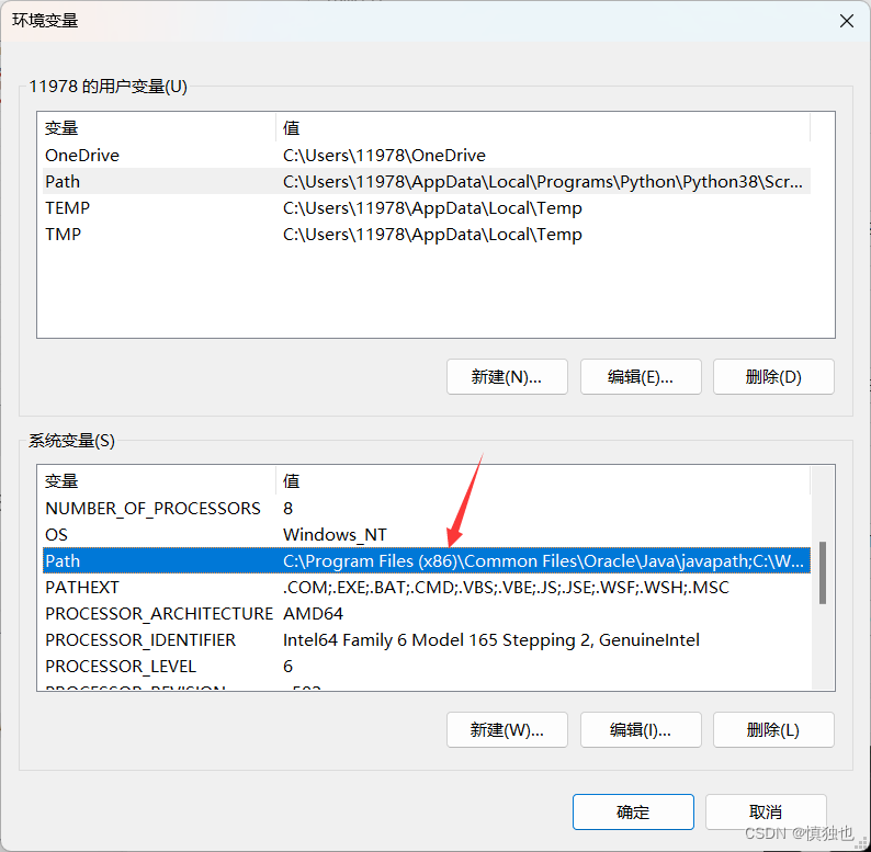 新建完系统变量后,对用户变量中的Path变量进行编辑。