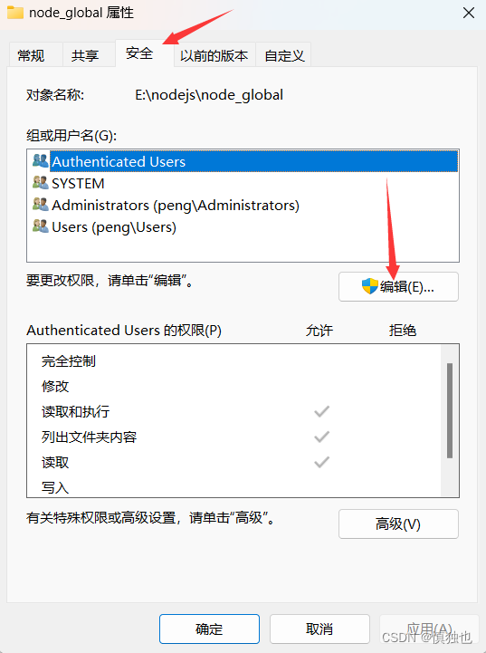 鼠标右键点击node_global文件夹→点击属性→点击编辑→把完全控制的方框打勾→点击确定→点击确定退出属性编辑窗口