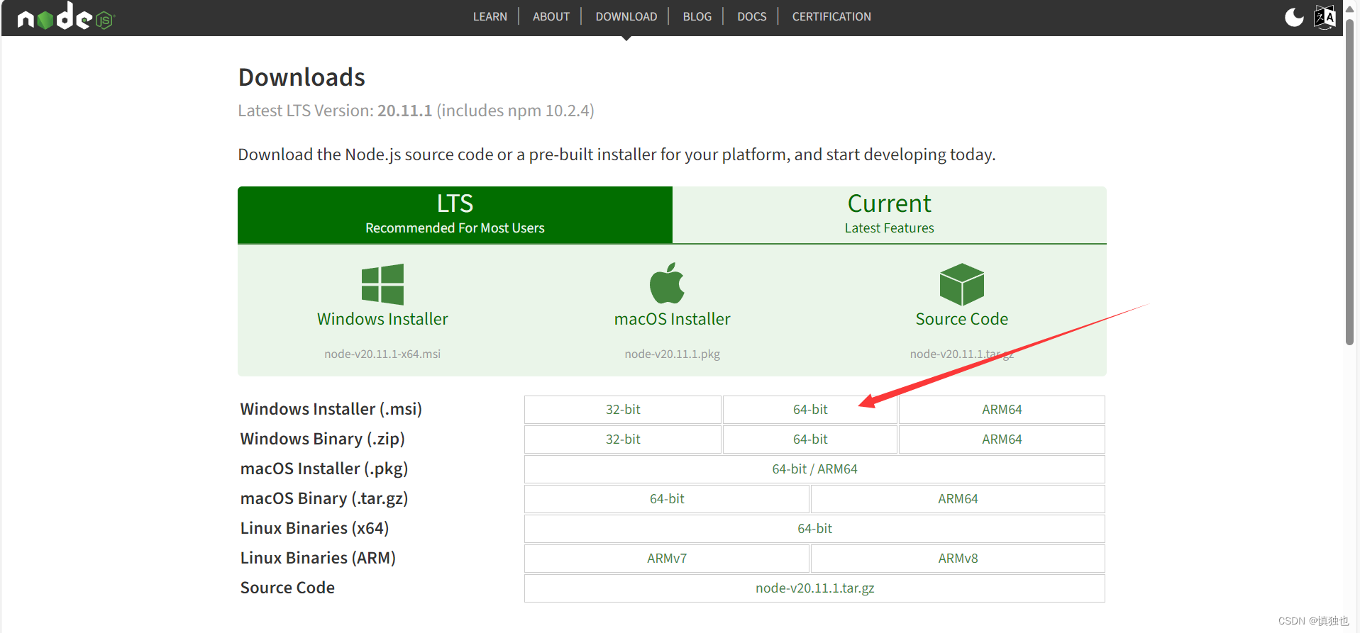 选择对应操作系统的.msi安装包下载,我是Windows系统,64位
