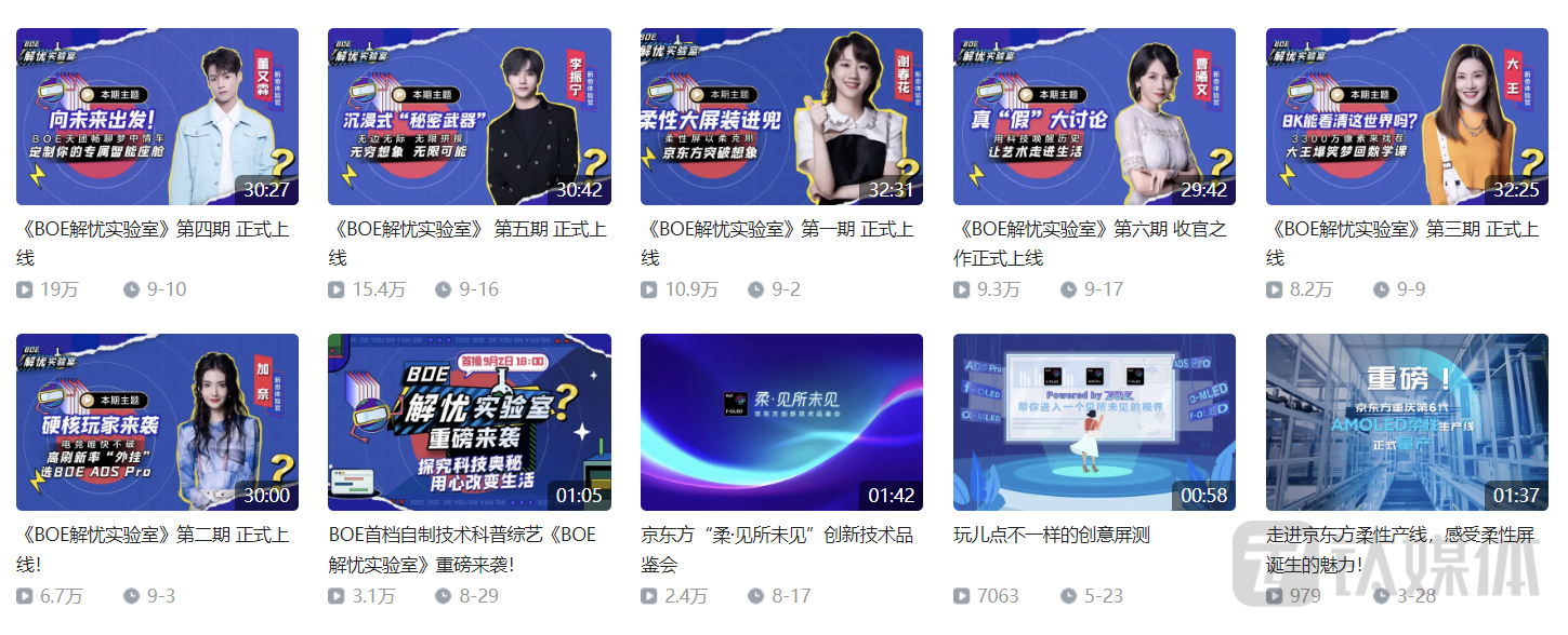 截止目前,《BOE解忧实验室》6期节目在B站上的累计播放量已经达到了70万次,虽然和当红综艺乃至腰部的综艺节目仍有不小的差距,但作为每期融入显示技术偏科普类的综艺节目来说,这个成绩还算可以接受。