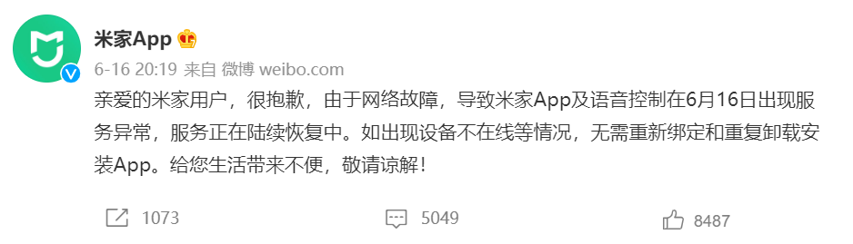 但近些年来,小米AIoT增长已经有放缓迹象。2021年小米IoT与生活消费产品营收同比增长26%。相比以前高速增长不同的是,今年第一季度来自IoT与生活消费产品营收同比微增6.8%。并且随着接入设备的增多,小米搭建的平台也多次因为技术问题导致“瘫痪”,遭到消费者大面积投诉。