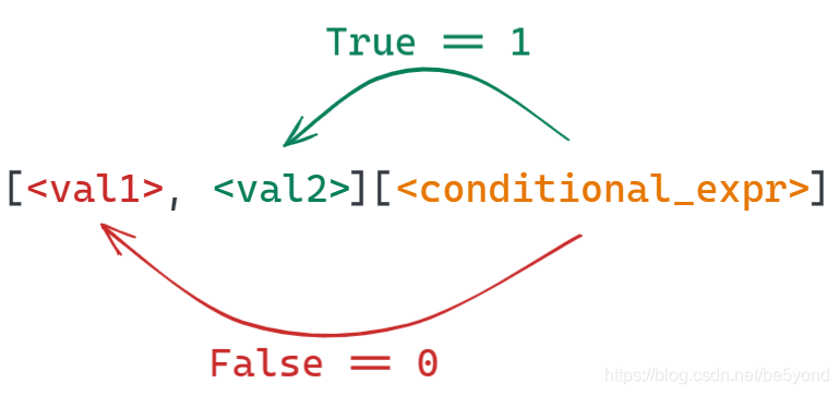 将condition_expr放到[]中,执行结果为 False 则定位到 val1, 执行结果为 True 则定位到val2