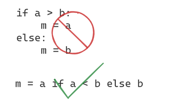 if ... else ... 语句中, 如果条件分支中的代码较少, 如赋值操作语句, 优先使用条件表达式完成