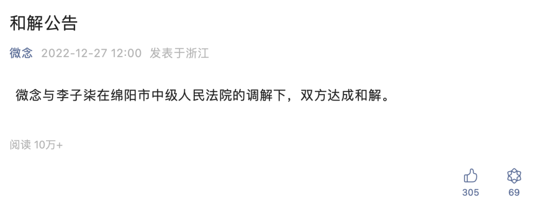 随着李子柒和微念之间的纠纷在2022年12月底尘埃落定,“微念与李子柒在绵阳市中级人民法院的调解下,双方达成和解”,已经在各大短视频平台停更一年多的李子柒,又一次被放在了聚光灯下。