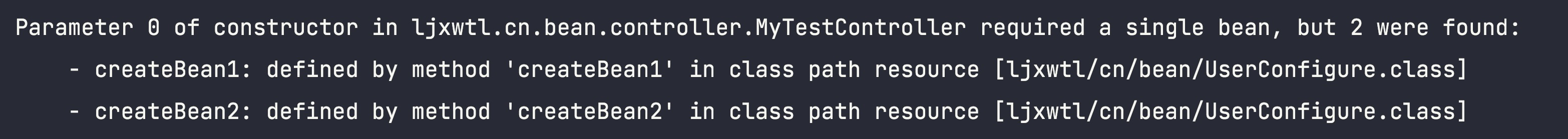 当我们把 @ConditionalOnMissingBean放到一个bean注入时,则就不会报错: