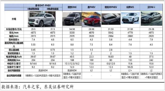 也就是说,长城把全部的技术资源都倾斜至魏牌,以提升产品力。这在效果上确有反馈,如下图,相比魏牌之前的车型,摩卡DHT-PHEV在配置、性能、智能化上进化明显。