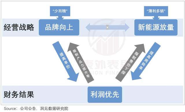 其在不放弃利润优先下,又大推品牌向上和新能源放量战略,在利润指标指导经营战略,“既要、又要、还要”之下,整体节奏有些脱轨、变形。