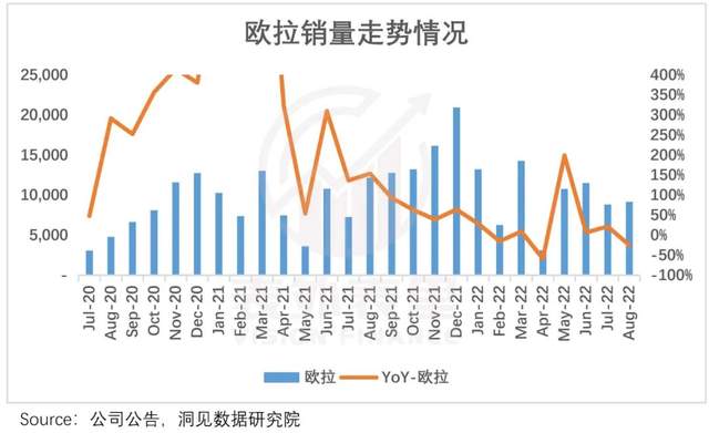 欧拉的销量拐头,持续走低。市场预期也随着转冷,如瑞银在今年4月表示,出于电动车业务估值下滑,将长城目标价由39港元下调至16港元。