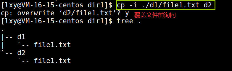 2)-i 或 --interactive 覆盖文件之前先询问用户