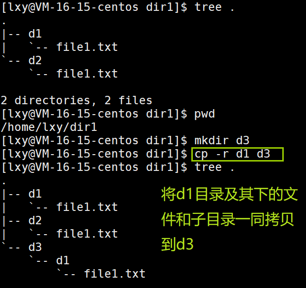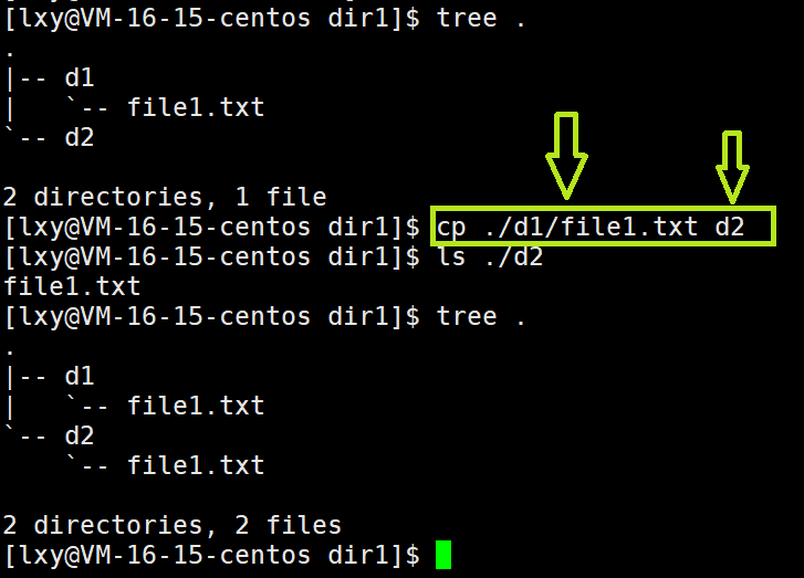 **说明: **cp指令用于复制文件或目录,如同时指定两个以上的文件或目录,且最后的目的地是一个已经存在的目录,则它会把前面指定的所有文件或目录复制到此目录中。若同时指定多个文件或目录,而最后的目的地并非一个已存在的目录,则会出现错误信息。