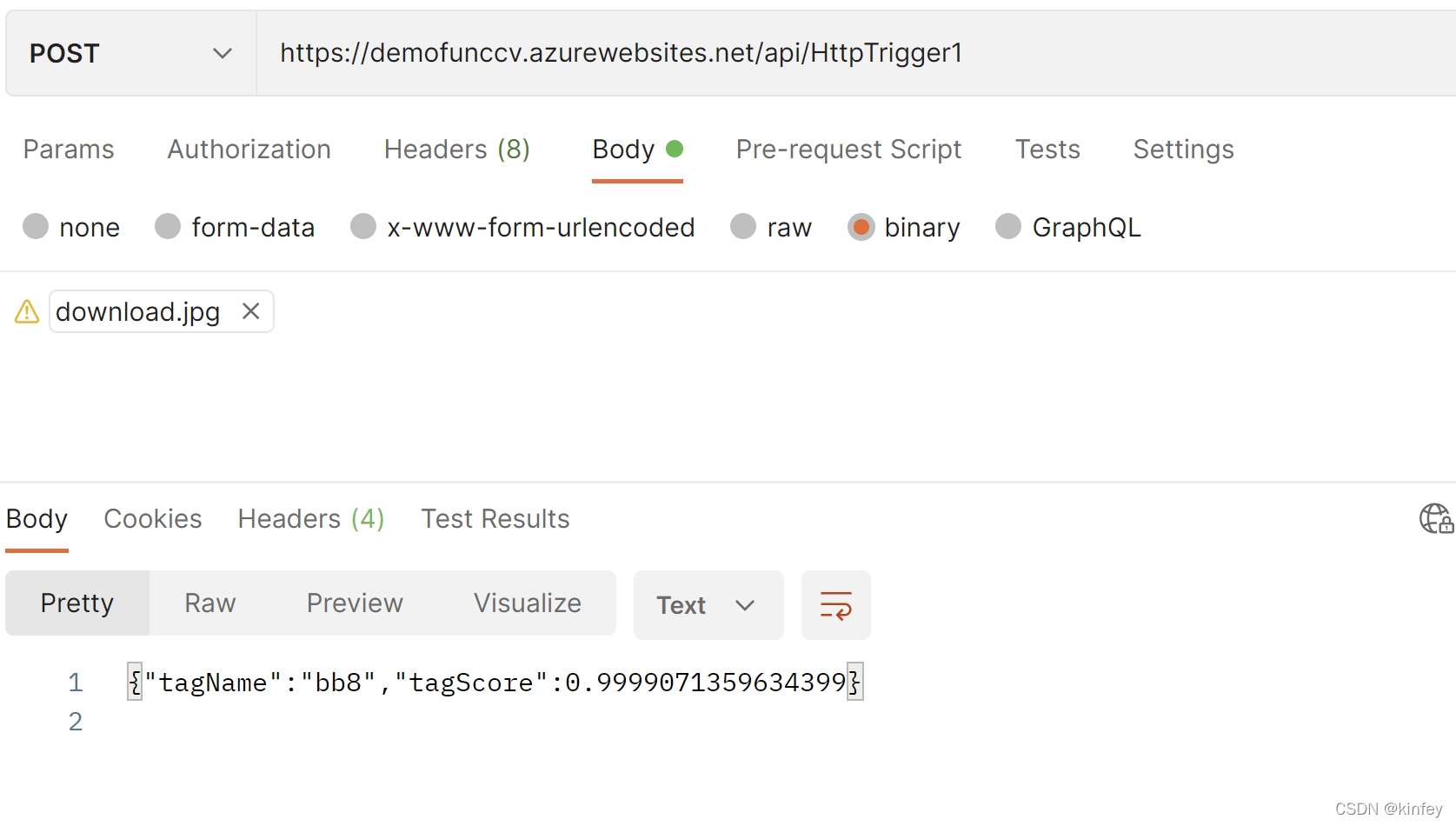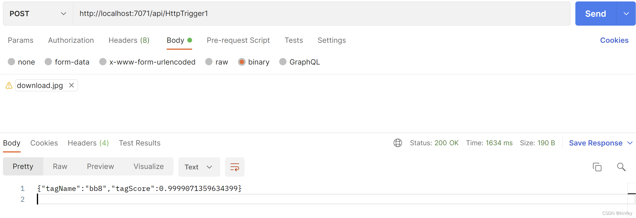 这里有个关键点,就是添加 Action 时 因为传输是一个二进制格式,所以Request 的 Body 需要设置为 "" , 而不是一个 Json ,并要设置成二进制