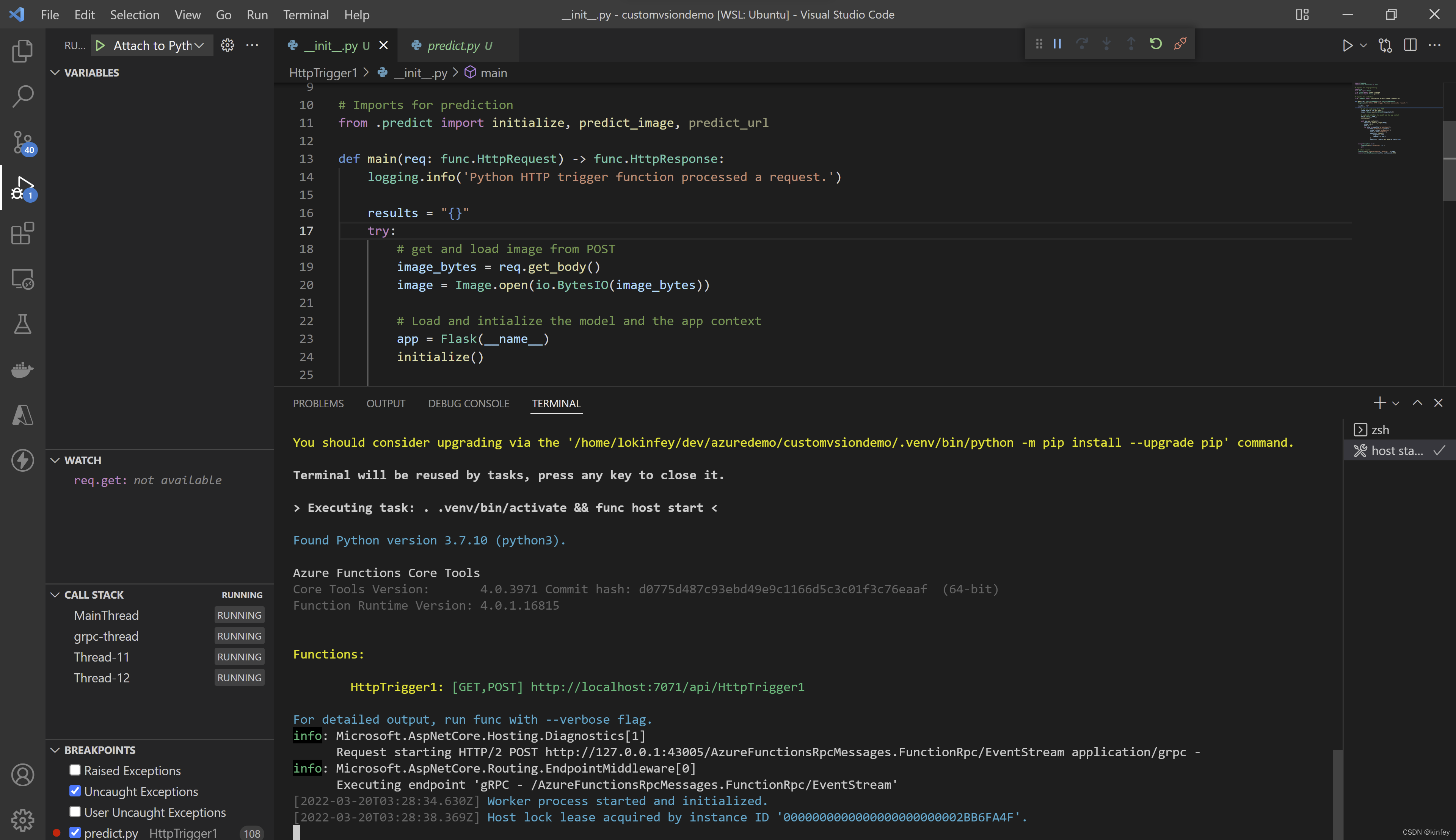 - 把从自定义视觉导出的代码 ,放到 Azure Function 的文件夹中 , 并修改 **init**.py